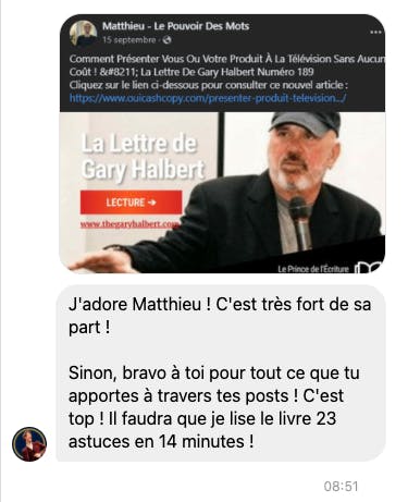 Cliquez simplement ci-dessous où il est indiqué "Recevoir La Lettre de Gary Halbert"... puis... vous recevrez par email toutes ces pépites.